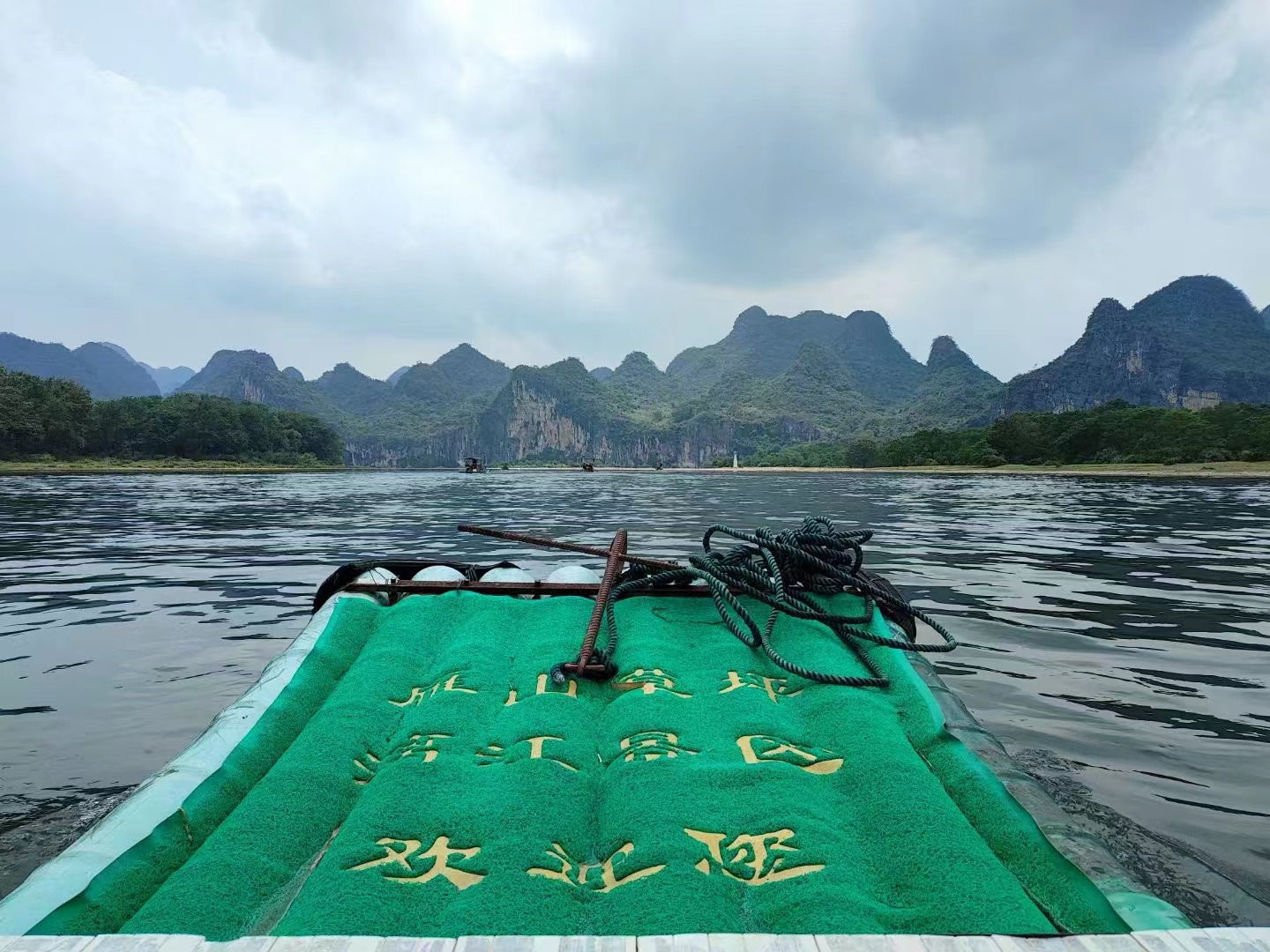 下午我們乘坐小竹筏,游覽漓江。兩岸山峰清秀迤邐,連綿起伏,形態萬千,江岸綠草如茵,翠竹蔥郁,樹木繁蔭。讓人仿佛進入了天人合一的詩意境界,返璞歸真的自由天地。 ![]()